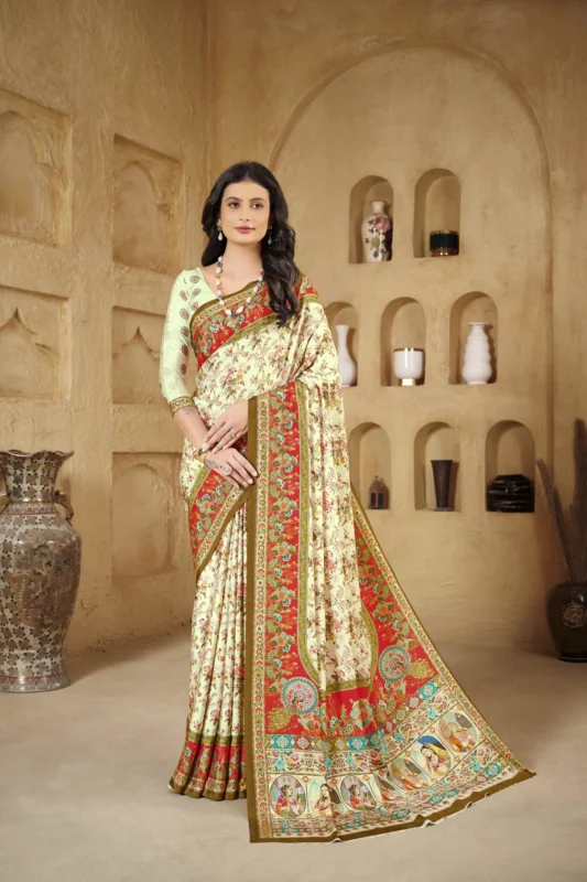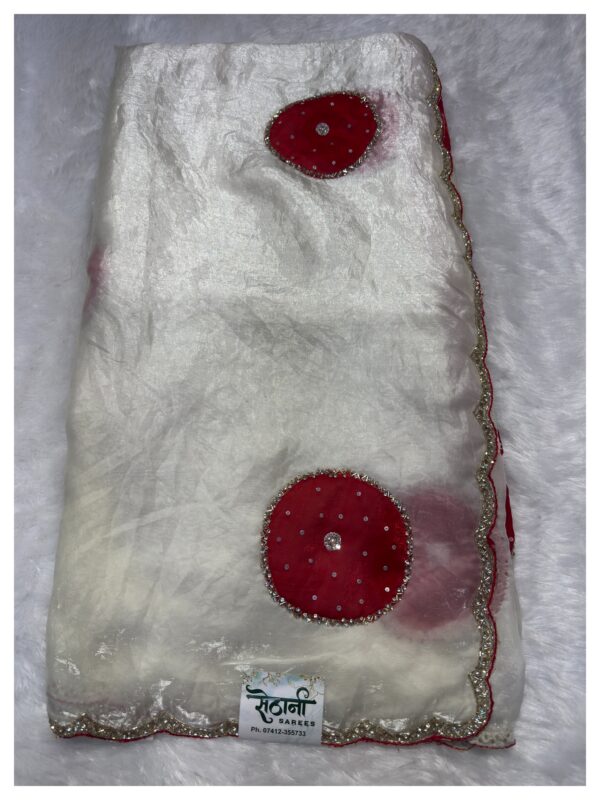 Cream with Red Gola Fandy Silk Saree