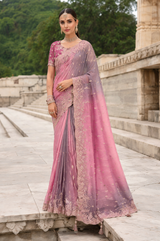 Rose Gold Copper Shading Soft Tissue Saree